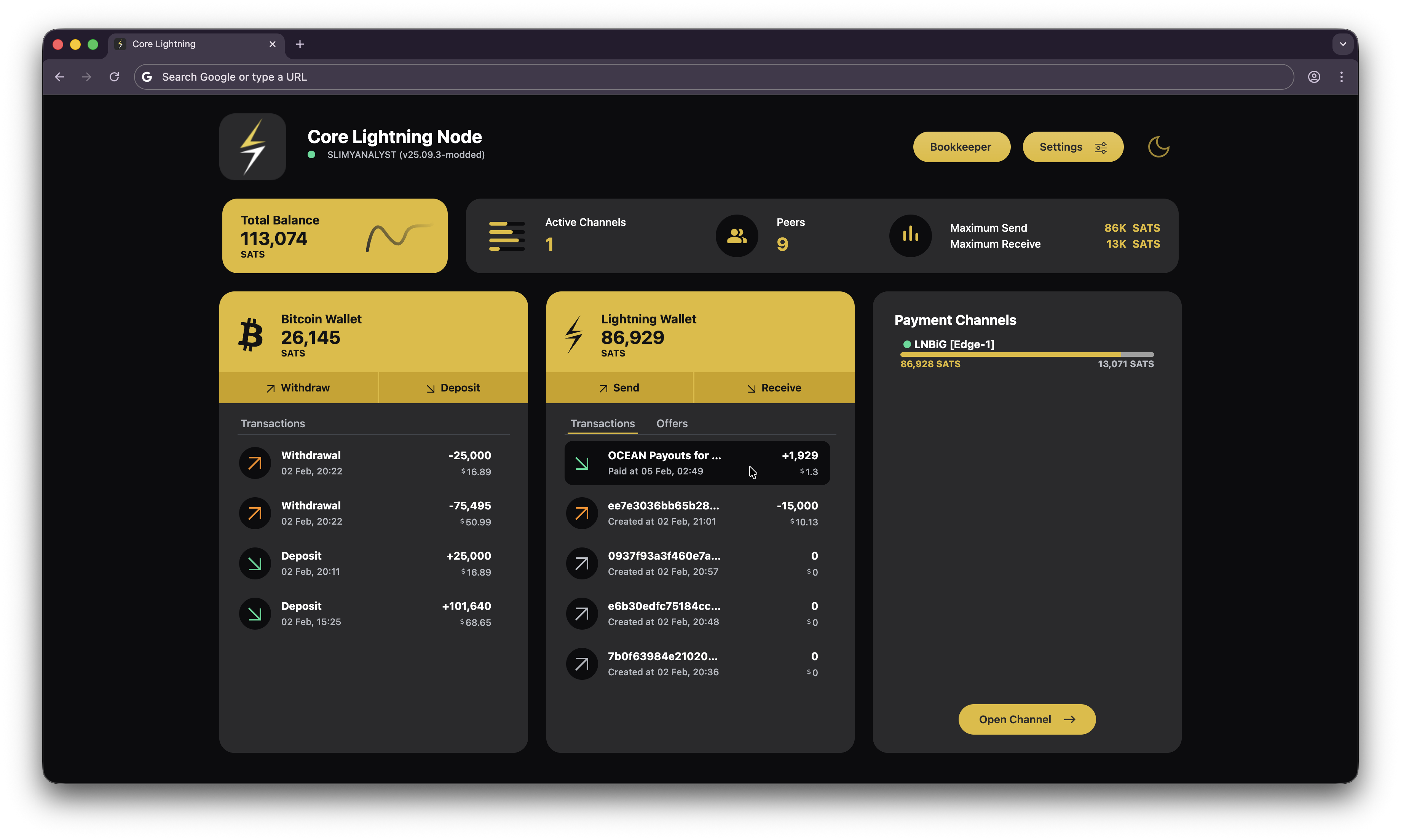 - Wait for the next couple of blocks found and you should see the payout in your Core Lightning wallet.