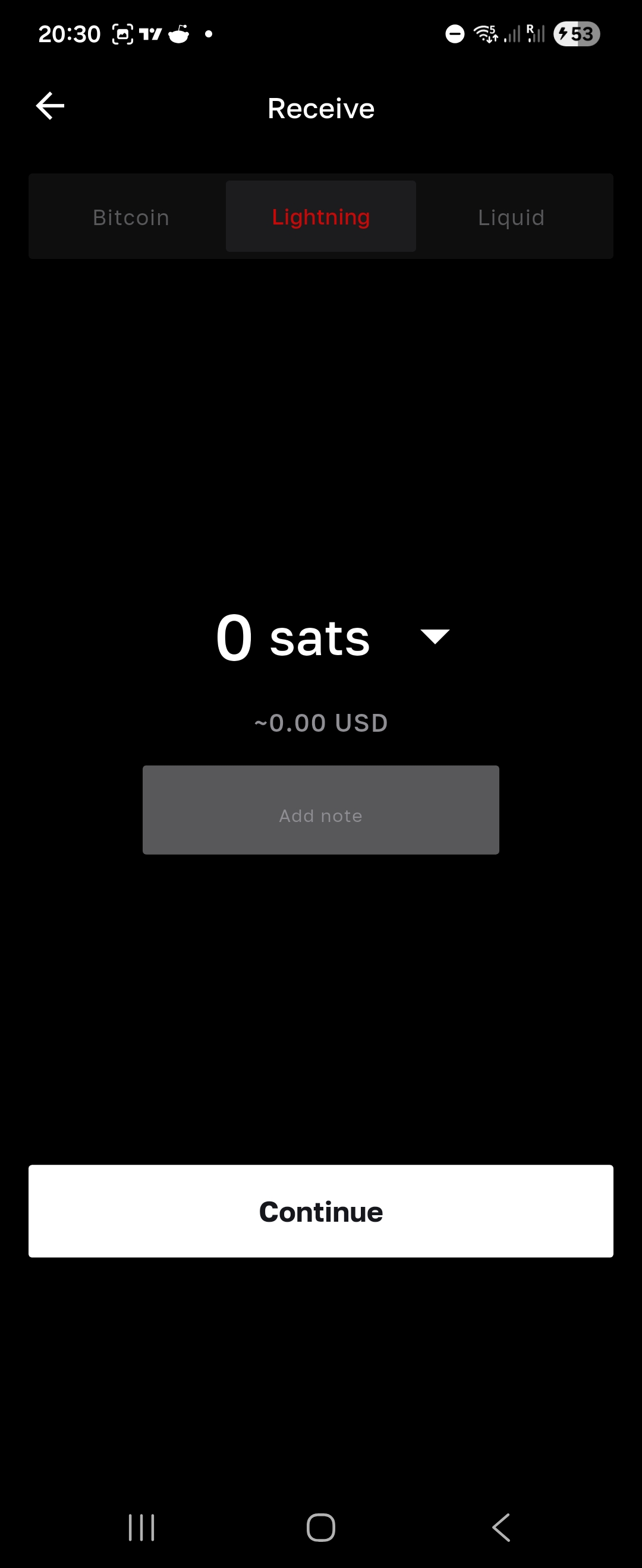- In Bull Bitcoin, navigate to the "Receive" section and select "Lightning".